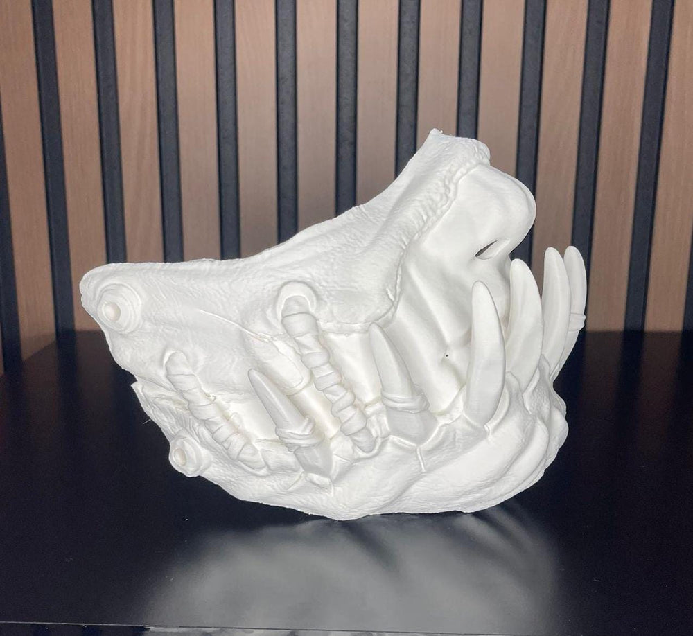 This fierce-looking demonic mask is ready to be transformed into a unique masterpiece. Made in white, it offers artists and DIY enthusiasts the perfect opportunity to customize it according to their style and creativity. With intricate details and a stunning design that includes fangs and realistic texture, this mask is ideal for costumes, themed events, Halloween, or as an original decorative piece. Make it yours with your own colors and details!