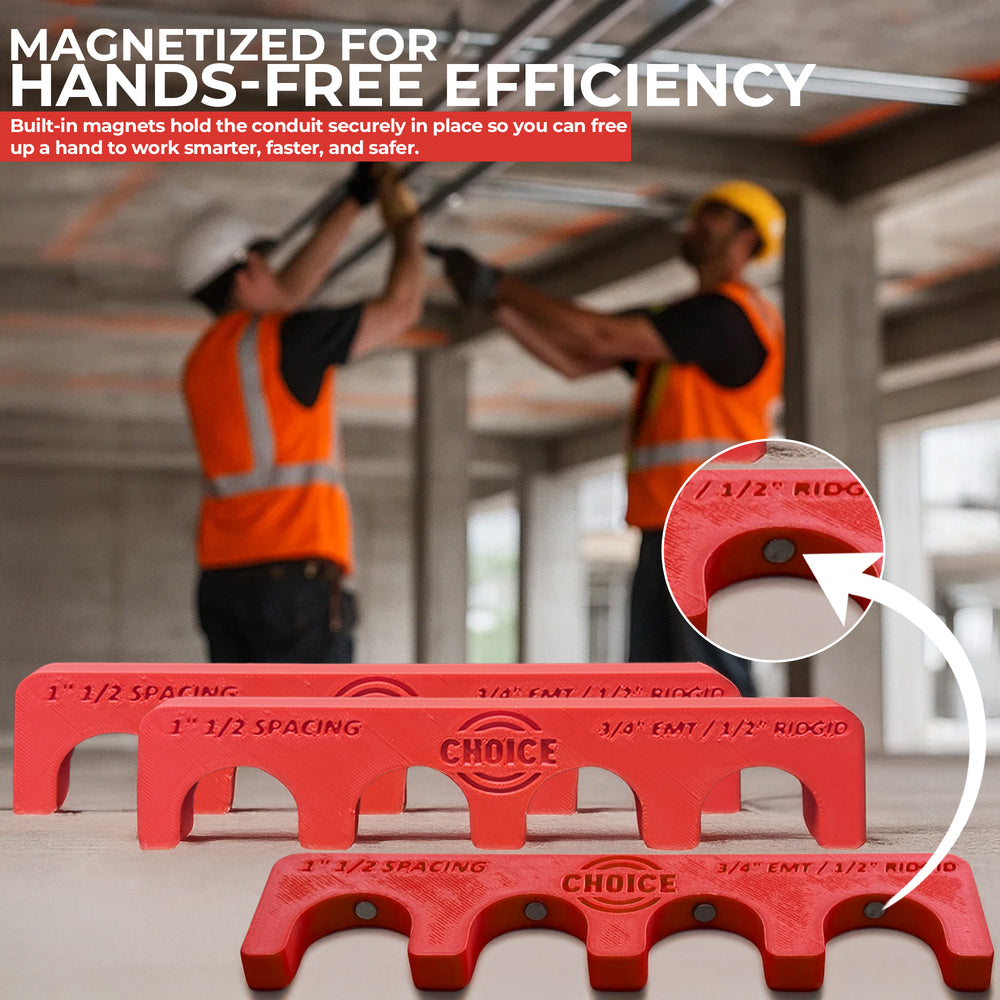 The Choice Electrician’s Magnetic Conduit Spacer is designed to make conduit installation faster, easier, and more precise.