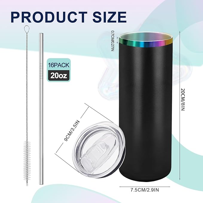 • Rainbow or Matte Finish: A colorful plated coating that makes each tumbler stand out.