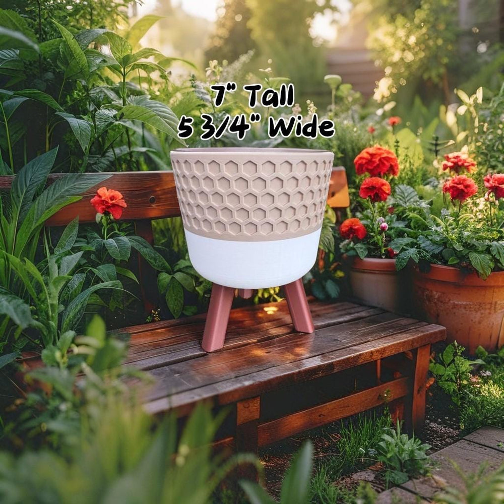 Add a modern touch to your home with this 3D printed planter featuring a striking honeycomb hexagon design and sturdy tripod legs. Perfect for showcasing your favorite indoor plants, this planter combines bold geometric texture with a clean, minimalist aesthetic. The elevated design adds visual interest and keeps surfaces safe from moisture.