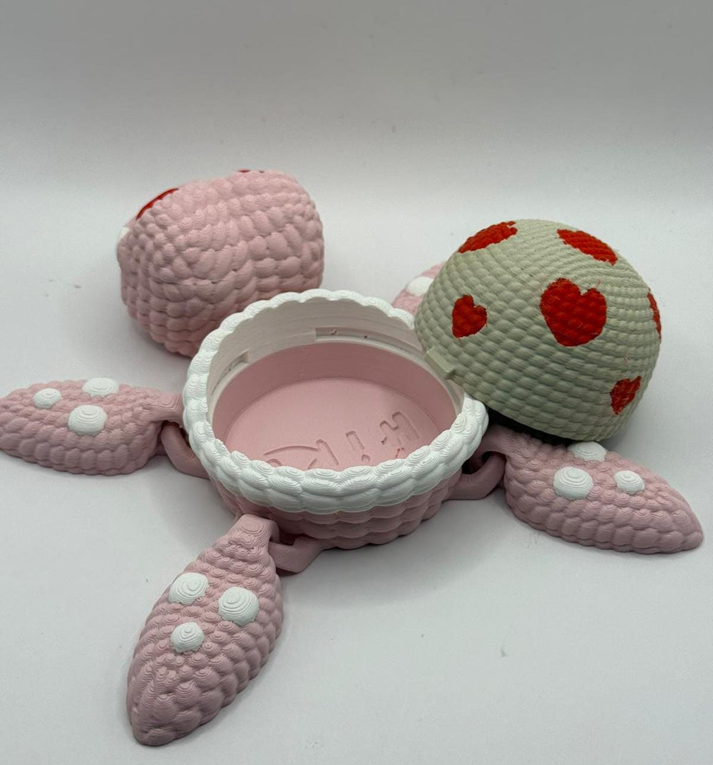This adorable 3D printed turtle is the perfect gift to celebrate Valentine's Day. With a detailed design and a heart-decorated shell, it's not only a decorative piece, but also a practical multi-purpose box.